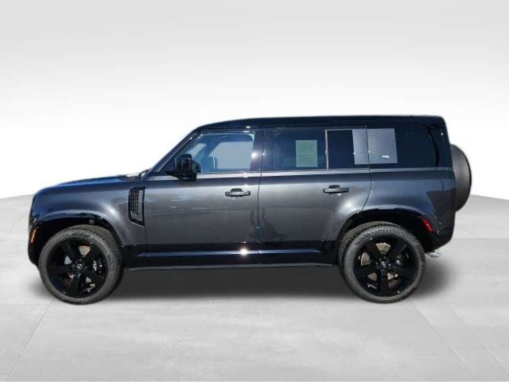 Certified. Carpathian Gray Premium Metallic 2024 Land Rover Defender 110 V8 4WD 8-Speed Automatic 5.0L V8 CARFAX One-Owner. Clean CARFAX. Land Rover Approved Certified Pre-Owned Certified, Body Colored Spare Wheel Cover, Extended Black Exterior Pack, Gloss Black Front Grille, Wheels: 22" Gloss Black Finish Style 5098, 14-Way Climate Electric Memory Front Seats, 15 Speakers, 3.55 Axle Ratio, 4-Wheel Disc Brakes, ABS brakes, Adaptive suspension, Air Conditioning, Alloy wheels, AM/FM radio: SiriusXM, Apple CarPlay & Android Auto, Auto High-beam Headlights, Auto tilt-away steering wheel, Auto-dimming door mirrors, Auto-dimming Rear-View mirror, Automatic temperature control, Brake assist, Bumpers: body-color, Compass, Delay-off headlights, Driver door bin, Driver vanity mirror, Dual front impact airbags, Dual front side impact airbags, Electronic Stability Control, Exterior Parking Camera Rear, Four wheel independent suspension, Front anti-roll bar, Front Bucket Seats, Front Center Armrest, Front dual zone A/C, Front fog lights, Front reading lights, Fully automatic headlights, Garage door transmitter: HomeLink, Headlight cleaning, Heads-Up Display, Heated door mirrors, Heated front seats, Heated rear seats, Heated steering wheel, Illuminated entry, Leather Shift Knob, Low tire pressure warning, Memory seat, Navigation system: Connected Navigation PIVI Pro, Occupant sensing airbag, Outside temperature display, Overhead airbag, Overhead console, Panic alarm, Passenger door bin, Passenger vanity mirror, Power door mirrors, Power driver seat, Power moonroof, Power passenger seat, Power steering, Power windows, Radio data system, Radio: 700W 15 Speaker Meridian Surround Sound Sys, Rain sensing wipers, Rear air conditioning, Rear anti-roll bar, Rear fog lights, Rear reading lights, Rear seat center armrest, Rear window defroster, Rear window wiper, Remote keyless entry, Security system, Speed control, Speed-sensing steering, Speed-Sensitive Wipers, Split folding rear seat, Steering wheel memory, Steering wheel mounted audio controls, Tachometer, Telescoping steering wheel, Tilt steering wheel, Traction control, Trip computer, Variably intermittent wipers, Ventilated front seats, Weather band radio, Windsor Lthr/Dinamica Suedecloth & Robustec Seat Trim, Body Colored Spare Wheel Cover, Extended Black Exterior Pack, Gloss Black Front Grille, Wheels: 22" Gloss Black Finish Style 5098.