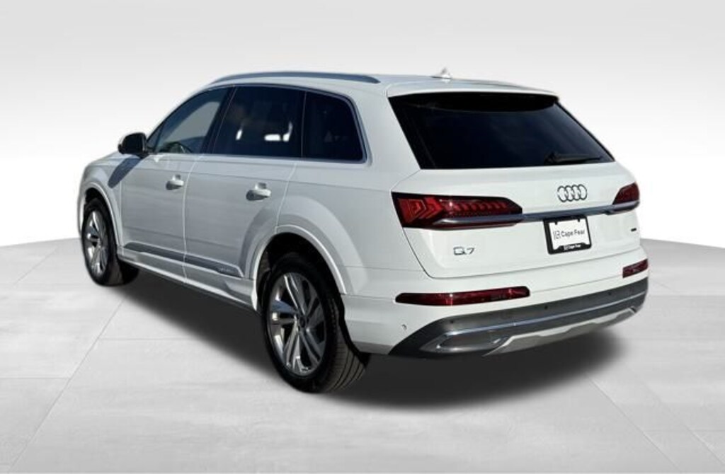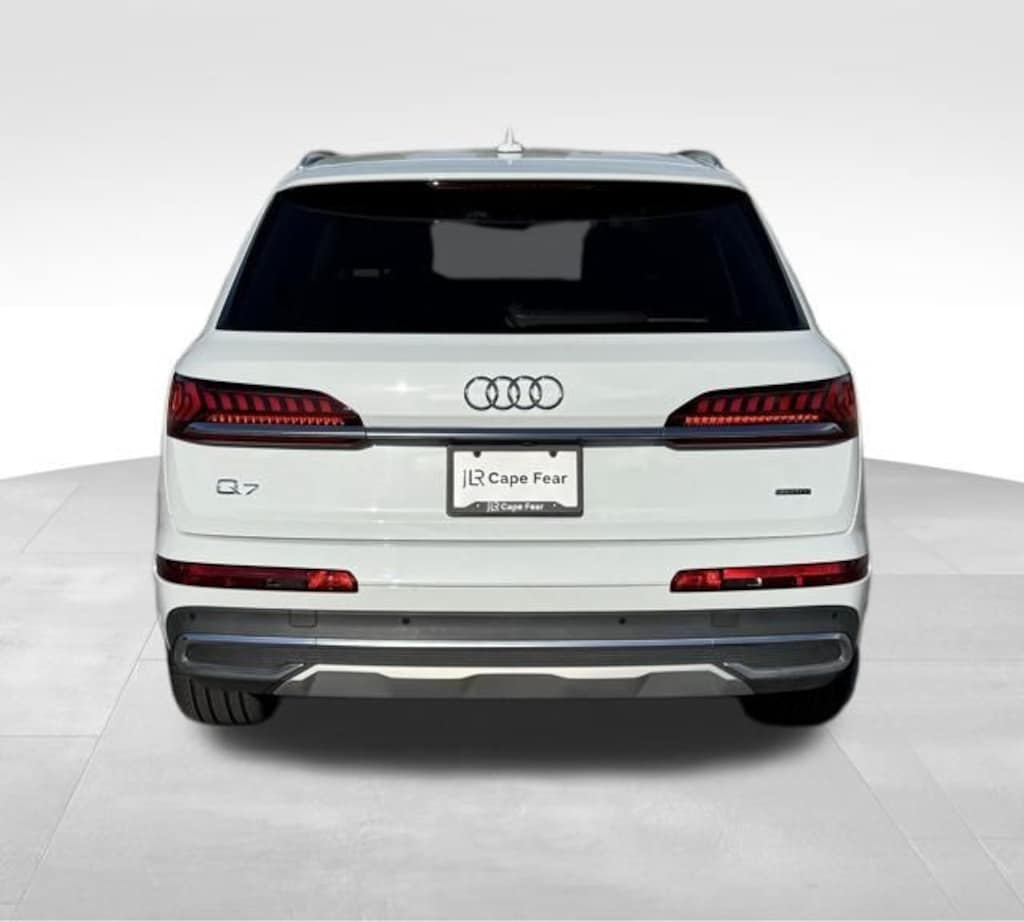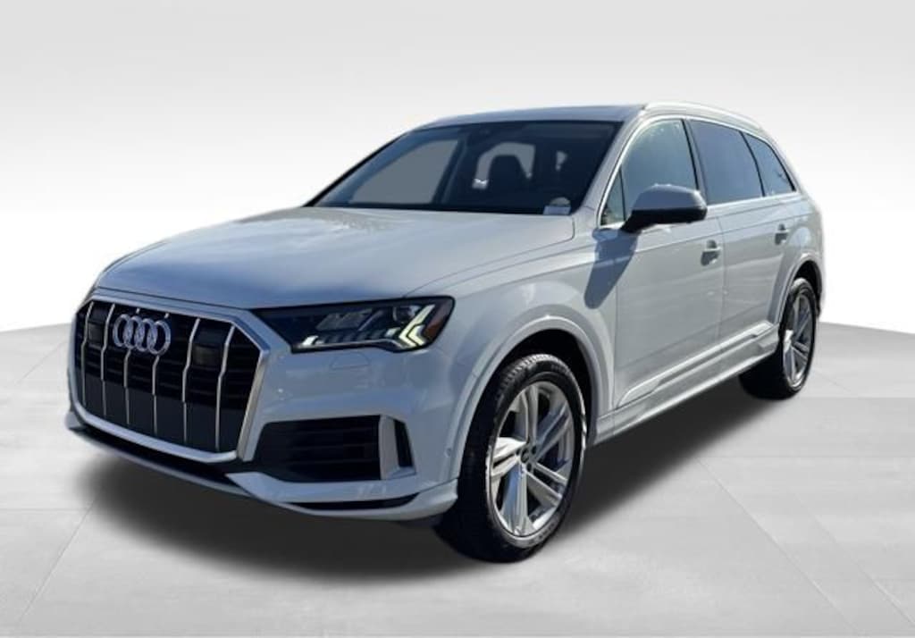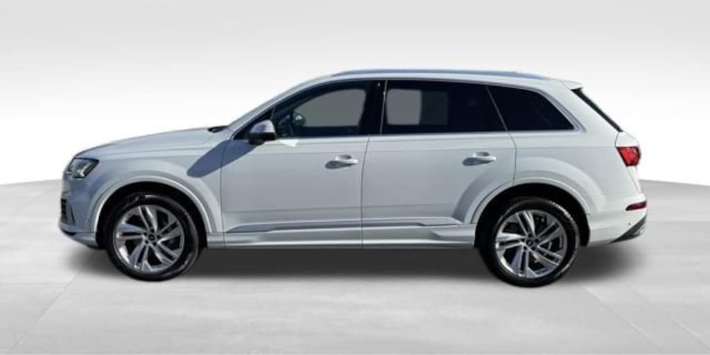 Carrara White 2023 Audi Q7 55 Premium quattro quattro 8-Speed Automatic with Tiptronic 3.0L TFSI CARFAX One-Owner. Clean CARFAX. Adaptive Cruise Assist w/Lane Guidance, Audi Phone Box w/Wireless Charging, Convenience Package, Heated Steering Wheel, Topview Camera System, 10 Speakers, 3.204 Axle Ratio, 3rd row seats: bench, 4-Wheel Disc Brakes, ABS brakes, Air Conditioning, Alloy wheels, AM/FM radio: SiriusXM w/ 360L, Auto High-beam Headlights, Auto-dimming door mirrors, Auto-dimming Rear-View mirror, Automatic temperature control, Brake assist, Bumpers: body-color, Compass, Delay-off headlights, Driver door bin, Driver vanity mirror, Dual front impact airbags, Dual front side impact airbags, Electronic Stability Control, Emergency communication system: Audi connect CARE, Exterior Parking Camera Rear, Four wheel independent suspension, Front anti-roll bar, Front Bucket Seats, Front Center Armrest, Front dual zone A/C, Front fog lights, Front reading lights, Fully automatic headlights, Garage door transmitter: HomeLink, Genuine wood door panel insert, Heated door mirrors, Heated Front Bucket Seats, Heated front seats, Illuminated entry, Leather Seating Surfaces, Leather Shift Knob, Leather steering wheel, Low tire pressure warning, Memory seat, Navigation system: Audi MMI Navigation plus with Touch Response, Occupant sensing airbag, Outside temperature display, Overhead airbag, Overhead console, Panic alarm, Passenger door bin, Passenger vanity mirror, Power door mirrors, Power driver seat, Power Liftgate, Power moonroof: Panoramic, Power passenger seat, Power steering, Power windows, Radio data system, Radio: Audi Sound System, Rain sensing wipers, Rear air conditioning, Rear anti-roll bar, Rear fog lights, Rear reading lights, Rear seat center armrest, Rear side impact airbag, Rear window defroster, Rear window wiper, Reclining 3rd row seat, Remote keyless entry, Roof rack: rails only, Security system, Speed control, Speed-sensing steering, Split folding rear seat, Spoiler, Steering wheel memory, Steering wheel mounted audio controls, Tachometer, Telescoping steering wheel, Tilt steering wheel, Traction control, Trip computer, Turn signal indicator mirrors, Variably intermittent wipers, Wheels: 19" 5-Arm-Star Design, Adaptive Cruise Assist w/Lane Guidance, Audi Phone Box w/Wireless Charging, Convenience Package, Heated Steering Wheel, Topview Camera System.