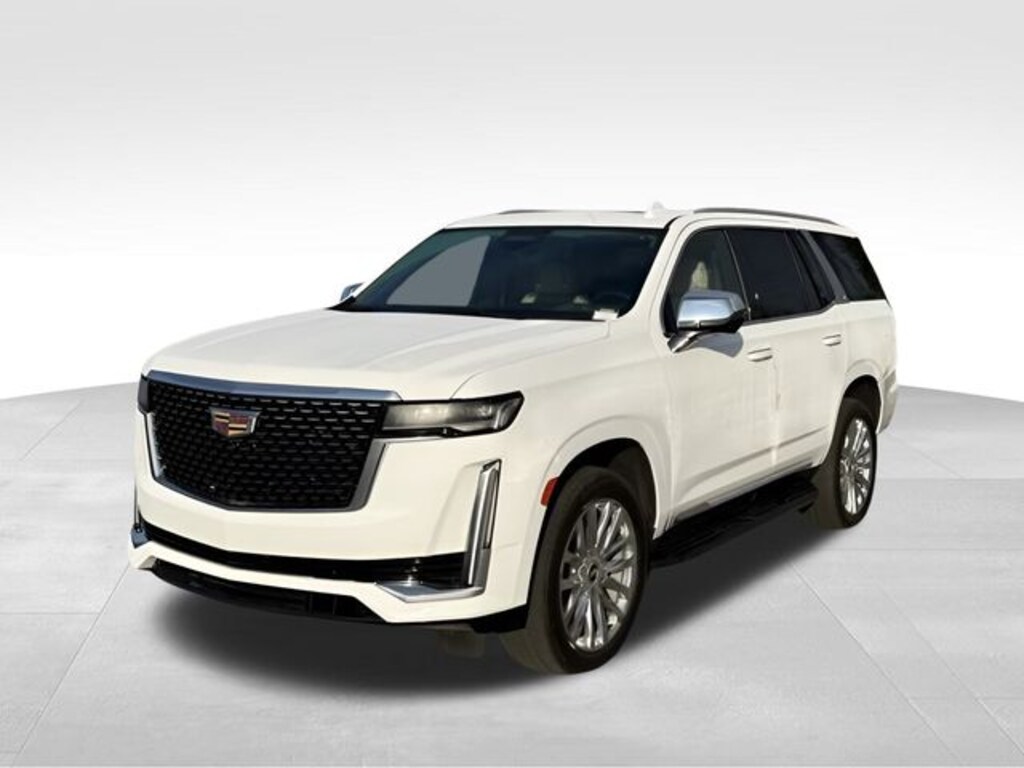 Crystal White 2023 Cadillac Escalade Premium Luxury AWD 10-Speed Automatic 6.2L V8 CARFAX One-Owner. AWD, Parchment With Jet Black Accents Leather, Rear Seat Entertainment System, Super Cruise, Wheels: 22" 14-Spoke Alloy w/Polished Finish, 16.9" Diagonal OLED Infotainment Screen, 19 Speakers, 2-Presets Memory For Driver Seat Adjuster, 2-Way Driver Power Lumbar Seat Adjuster, 2-Way Front Passenger Power Lumbar Seat Adjuster, 3.23 Axle Ratio, 3rd row seats: split-bench, 4-Way Power Driver Lumbar Seat Adjuster, 4-Way Power Front Passenger Lumbar Seat Adjuster, 4-Wheel Disc Brakes, 8-Way Power Driver Seat Adjuster, 8-Way Power Front Passenger Seat Adjuster, ABS brakes, Adaptive Cruise Control, Air Conditioning, AKG Studio 19-Speaker Audio System, Alloy wheels, AM/FM radio: SiriusXM with 360L, Apple CarPlay/Android Auto, Audio memory, Auto High-beam Headlights, Auto tilt-away steering wheel, Auto-dimming door mirrors, Auto-dimming Rear-View mirror, Automatic Seat Belt Tightening, Automatic temperature control, Brake assist, Bumpers: body-color, Compass, Delay-off headlights, Door Lock & Latch Shields, Driver door bin, Driver vanity mirror, Dual front impact airbags, Dual front side impact airbags, Electronic Stability Control, Emergency communication system: OnStar and Cadillac connected services capable, Enhanced Automatic Emergency Braking, Enhanced Automatic Parking Assist, Exterior Parking Camera Rear, Four wheel independent suspension, Front anti-roll bar, Front Bucket Seats, Front Center Armrest w/Storage, Front dual zone A/C, Front reading lights, Fully automatic headlights, Garage door transmitter, Glass Breakage Sensor, HD Radio, Heads-Up Display, Heated & Ventilated Driver & Front Passenger Seats, Heated door mirrors, Heated Driver & Front Passenger Seats, Heated front seats, Heated rear seats, Heated steering wheel, Illuminated entry, Lane Change Alert w/Side Blind Zone Alert, Leather Seating Surfaces w/Mini-Chevron Perf Inserts, Low tire pressure warning, Mechanical Limited-Slip Differential, Memory seat, Navigation System, Not Equipped w/2nd Row Express-Up Window Control, Not Equipped w/4-Way Driver & Fr Pass Pwr Lumbar, Occupant sensing airbag, Outside temperature display, Overhead airbag, Overhead console, Panic alarm, Passenger door bin, Passenger vanity mirror, Power door mirrors, Power driver seat, Power Liftgate, Power moonroof, Power Panoramic Tilt-Sliding Sunroof, Power passenger seat, Power steering, Power windows, Preferred Equipment Group 1SB, Premium Smooth Ride Suspension, Radio data system, Radio: AM/FM w/Navigation, Rain sensing wipers, Rear air conditioning, Rear anti-roll bar, Rear Camera Mirror, Rear Camera Mirror Washer, Rear Cross Traffic Alert, Rear reading lights, Rear window defroster, Rear window wiper, Reconfigurable Full-Color Head-Up Display, Remote keyless entry, Reverse Automatic Braking, Running Board Assist Steps, Security system, SiriusXM w/360L, Speed control, Split folding rear seat, Spoiler, Steering wheel memory, Steering wheel mounted audio controls, Tachometer, Teen Driver, Telescoping steering wheel, Theft-Deterrent Alarm System, Tilt steering wheel, Traction control, Trip computer, Turn signal indicator mirrors, Variably intermittent wipers, Vehicle Inclination Sensor, Vehicle Interior Movement Sensor, Ventilated front seats, Voltmeter, Wireless Apple CarPlay/Wireless Android Auto, AWD, Parchment With Jet Black Accents Leather, Rear Seat Entertainment System, Super Cruise, Wheels: 22" 14-Spoke Alloy w/Polished Finish.