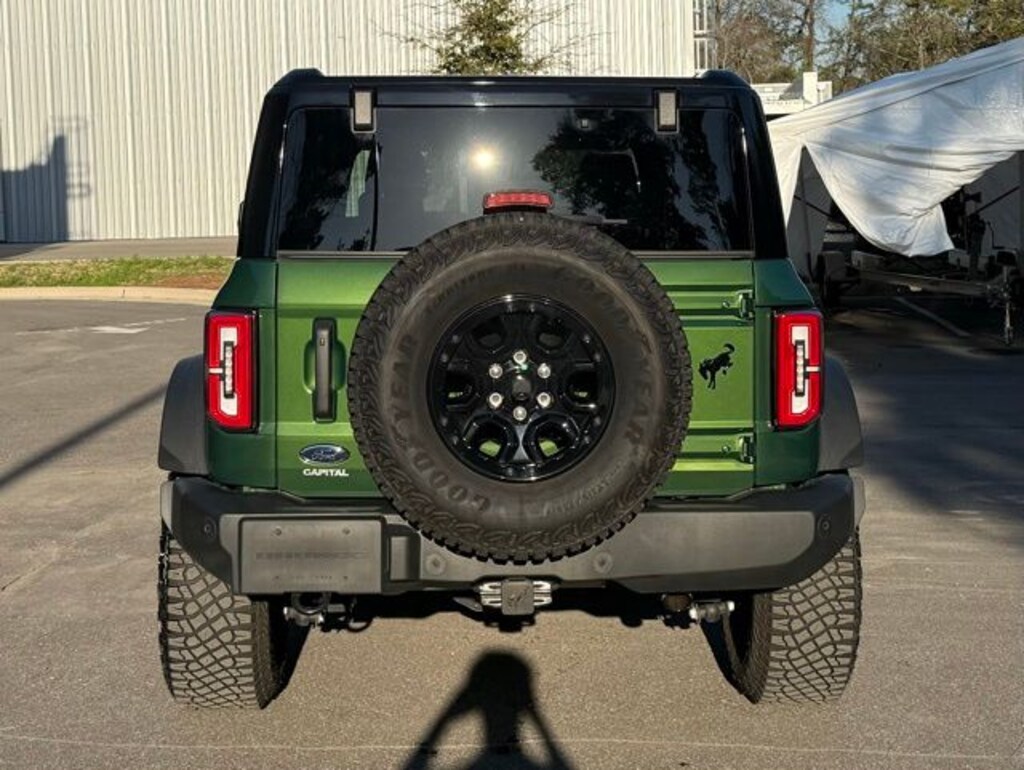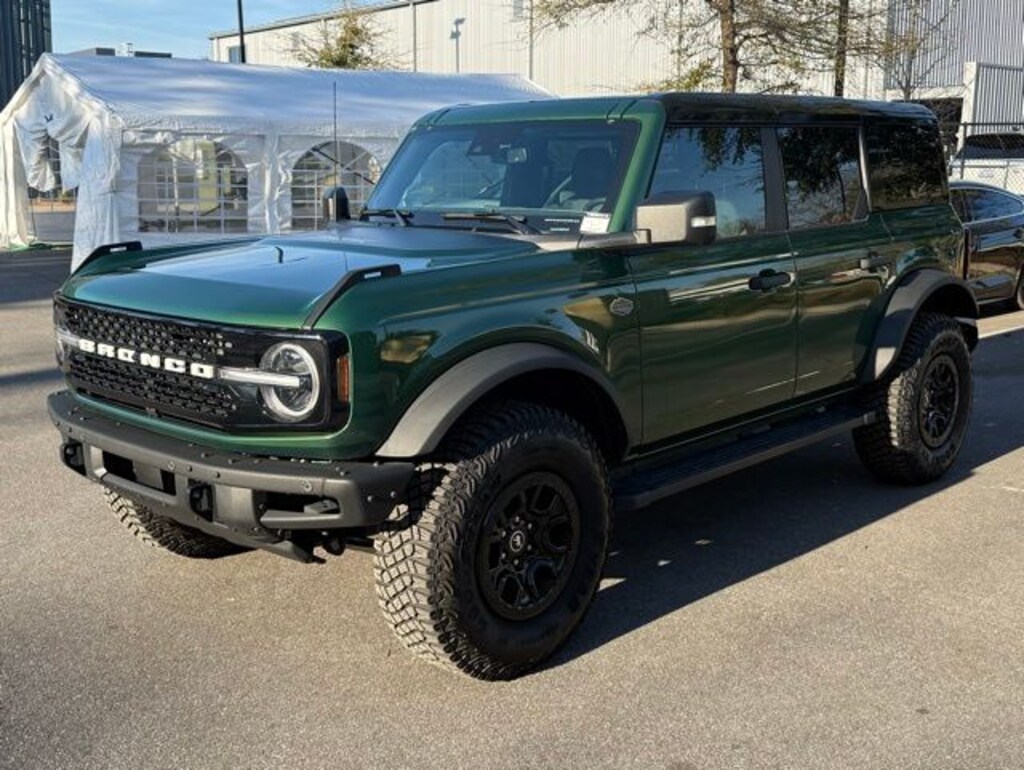 Shelter Green Metallic 2024 Ford Bronco Wildtrak 4WD 10-Speed Automatic 2.7L EcoBoost V6 CARFAX One-Owner. 10 Speakers w/Subwoofer, 360-Degree Camera, Adaptive Cruise Control, Additional Sound Deadening, Equipment Group 354A High/Lux Package, Evasive Steering Assist, Front Parking Sensors, Front Row Top Panels Storage Bag, Hard Top Sound Deadening Headliner, Heated Steering Wheel, Information on Demand Panel, Radio: B&O Sound System by Bang & Olufsen, Rear-Window Defroster & Washer, Shadow Black Painted Hard Top, Sideview Mirrors, Universal Garage Door Opener, Wheels: 17" Black High Gloss-Painted Aluminum, Wireless Charging Pad, 4-Wheel Disc Brakes, 7 Speakers, ABS brakes, Air Conditioning, Alloy wheels, AM/FM radio: SiriusXM with 360L, AM/FM Stereo, Auto High-beam Headlights, Auto-dimming Rear-View mirror, Automatic temperature control, Brake assist, Cargo Area Protector, Compass, Connected Navigation, Delay-off headlights, Driver door bin, Driver vanity mirror, Dual front impact airbags, Dual front side impact airbags, Electronic Stability Control, Emergency communication system: 911 Assist, Exterior Parking Camera Rear, Front & Rear Floor Liners, Front anti-roll bar, Front Bucket Seats, Front Center Armrest, Front dual zone A/C, Front fog lights, Front License Plate Bracket, Front reading lights, Front wheel independent suspension, Fully automatic headlights, Heated door mirrors, Heated front seats, Heated Leather-Trimmed/Vinyl Bucket Seats, Illuminated entry, Integrated roll-over protection, Leather Shift Knob, Low tire pressure warning, Navigation system: Connected Navigation, Occupant sensing airbag, Outside temperature display, Overhead airbag, Overhead console, Panic alarm, Passenger door bin, Passenger vanity mirror, Powder Coated Tube Step, Power door mirrors, Power steering, Power windows, Radio data system, Remote keyless entry, Security system, SiriusXM Radio w/360L, Speed control, Split folding rear seat, Steering wheel mounted audio controls, SYNC 4, Tachometer, Telescoping steering wheel, Tilt steering wheel, Traction control, Trip computer, Variably intermittent wipers, Voltmeter, 10 Speakers w/Subwoofer, 360-Degree Camera, Adaptive Cruise Control, Additional Sound Deadening, Equipment Group 354A High/Lux Package, Evasive Steering Assist, Front Parking Sensors, Front Row Top Panels Storage Bag, Hard Top Sound Deadening Headliner, Heated Steering Wheel, Information on Demand Panel, Radio: B&O Sound System by Bang & Olufsen, Rear-Window Defroster & Washer, Shadow Black Painted Hard Top, Sideview Mirrors, Universal Garage Door Opener, Wheels: 17" Black High Gloss-Painted Aluminum, Wireless Charging Pad.