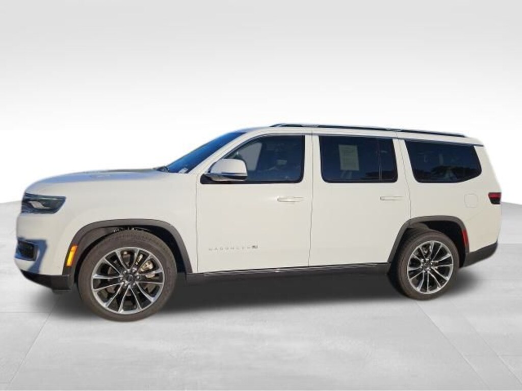 Bright White Clearcoat 2022 Jeep Wagoneer Series III 4WD 8-Speed Automatic 5.7L V8 CARFAX One-Owner. 19 Speaker McIntosh Audio System, 3 Panel Sunroof, 7-Passenger Seating, Adjustable Roof Rail Crossbars, Cargo Cover, Flexible Seating Group, Floor Console w/Cupholder, Front Passenger Interactive Display, Luxury Front & Rear Floor Mats, Power Deployable Running Boards, Power Tip/Slide Recline 2nd Row Buckets, Premium Group I (DISC), Reversible Carpet/Vinyl Cargo Mat, Wheels: 22" x 9.0" Premium 3 Aluminum (DISC), 10 Speakers, 3.21 Rear Axle Ratio, 3rd row seats: bench, 4-Wheel Disc Brakes, ABS brakes, Adjustable pedals, Air Conditioning, All-Season Floor Mats, Alloy wheels, AM/FM radio: SiriusXM with 360L, Anti-whiplash front head restraints, Audio memory, Auto High-beam Headlights, Auto-dimming door mirrors, Auto-dimming Rear-View mirror, Auto-leveling suspension, Automatic temperature control, Brake assist, Bumpers: body-color, Cargo Tray, Compass, Delay-off headlights, Driver door bin, Driver vanity mirror, Driver's Seat Mounted Armrest, Dual front impact airbags, Dual front side impact airbags, Electronic Stability Control, Exterior Parking Camera Rear, Four wheel independent suspension, Front anti-roll bar, Front Bucket Seats, Front Center Armrest w/Storage, Front dual zone A/C, Front fog lights, Front reading lights, Fully automatic headlights, Garage door transmitter, Genuine wood console insert, Genuine wood dashboard insert, Genuine wood door panel insert, Heads-Up Display, Heated door mirrors, Heated front seats, Heated rear seats, Heated steering wheel, Illuminated entry, Knee airbag, Leather Trimmed Bucket Seats, Low tire pressure warning, Memory seat, MOPAR Interior Protection Package, Navigation System, Normal Duty Suspension, Occupant sensing airbag, Outside temperature display, Overhead airbag, Overhead console, Panic alarm, Passenger door bin, Passenger seat mounted armrest, Passenger vanity mirror, Pedal memory, Power adjustable front head restraints, Power door mirrors, Power driver seat, Power Liftgate, Power passenger seat, Power steering, Power windows, Quick Order Package 22N, Radio data system, Radio: Uconnect 5 Nav w/10.1" Display, Rain sensing wipers, Rear air conditioning, Rear anti-roll bar, Rear dual zone A/C, Rear reading lights, Rear seat center armrest, Rear window defroster, Rear window wiper, Reclining 3rd row seat, Remote keyless entry, Security system, Speed control, Speed-sensing steering, Speed-Sensitive Wipers, Split folding rear seat, Steering wheel memory, Steering wheel mounted audio controls, Tachometer, Telescoping steering wheel, Tilt steering wheel, Traction control, Trip computer, Turn signal indicator mirrors, Variably intermittent wipers, Ventilated front seats, Voltmeter, 19 Speaker McIntosh Audio System, 3 Panel Sunroof, 7-Passenger Seating, Adjustable Roof Rail Crossbars, Cargo Cover, Flexible Seating Group, Floor Console w/Cupholder, Front Passenger Interactive Display, Luxury Front & Rear Floor Mats, Power Deployable Running Boards, Power Tip/Slide Recline 2nd Row Buckets, Premium Group I (DISC), Reversible Carpet/Vinyl Cargo Mat, Wheels: 22" x 9.0" Premium 3 Aluminum (DISC).