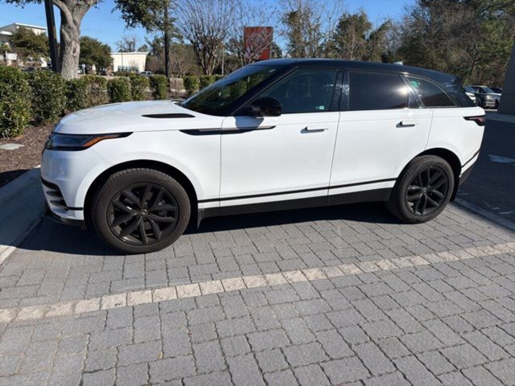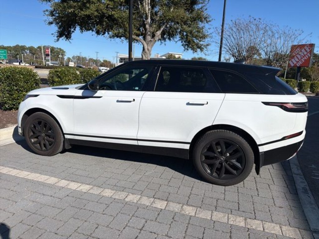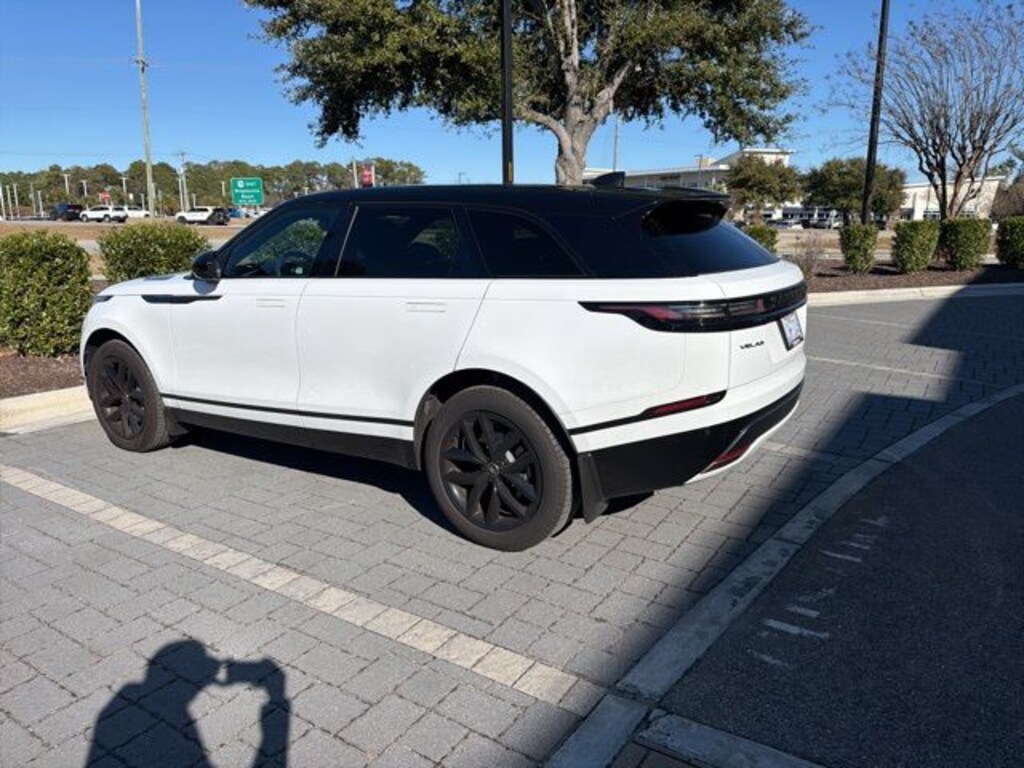 Fuji White 2025 Land Rover Range Rover Velar Dynamic SE AWD 8-Speed Automatic 2.0L I4 Turbocharged Clean CARFAX. 12 Speakers, 14-Way Heated Front Seats w/Driver Memory, 4-Wheel Disc Brakes, ABS brakes, Air Conditioning, Alloy wheels, AM/FM radio: SiriusXM, Apple CarPlay & Android Auto, Auto High-beam Headlights, Auto tilt-away steering wheel, Auto-dimming door mirrors, Auto-dimming Rear-View mirror, Automatic temperature control, Brake assist, Bumpers: body-color, Compass, Delay-off headlights, Driver door bin, Driver vanity mirror, Dual front impact airbags, Dual front side impact airbags, Electronic Stability Control, Emergency communication system, Exterior Parking Camera Rear, Four wheel independent suspension, Front anti-roll bar, Front Bucket Seats, Front Center Armrest, Front dual zone A/C, Front fog lights, Front reading lights, Fully automatic headlights, Garage door transmitter: HomeLink, Grained Leather Seat Trim, Heated door mirrors, Heated front seats, Heated steering wheel, Illuminated entry, Leather steering wheel, Low tire pressure warning, Memory seat, Navigation system: Pivi Pro, Occupant sensing airbag, Outside temperature display, Overhead airbag, Overhead console, Panic alarm, Passenger door bin, Passenger vanity mirror, Power door mirrors, Power driver seat, Power Liftgate, Power moonroof, Power passenger seat, Power steering, Power windows, Radio data system, Radio: Meridian Sound System, Rain sensing wipers, Rear anti-roll bar, Rear fog lights, Rear reading lights, Rear seat center armrest, Rear window defroster, Rear window wiper, Remote keyless entry, Security system, Sirius XM Satellite Radio & HD Radio, Speed control, Speed-sensing steering, Speed-Sensitive Wipers, Split folding rear seat, Spoiler, Steering wheel memory, Steering wheel mounted audio controls, Tachometer, Telescoping steering wheel, Tilt steering wheel, Traction control, Trip computer, Turn signal indicator mirrors, Variably intermittent wipers, Wheels: 19" Satin Dark Grey.